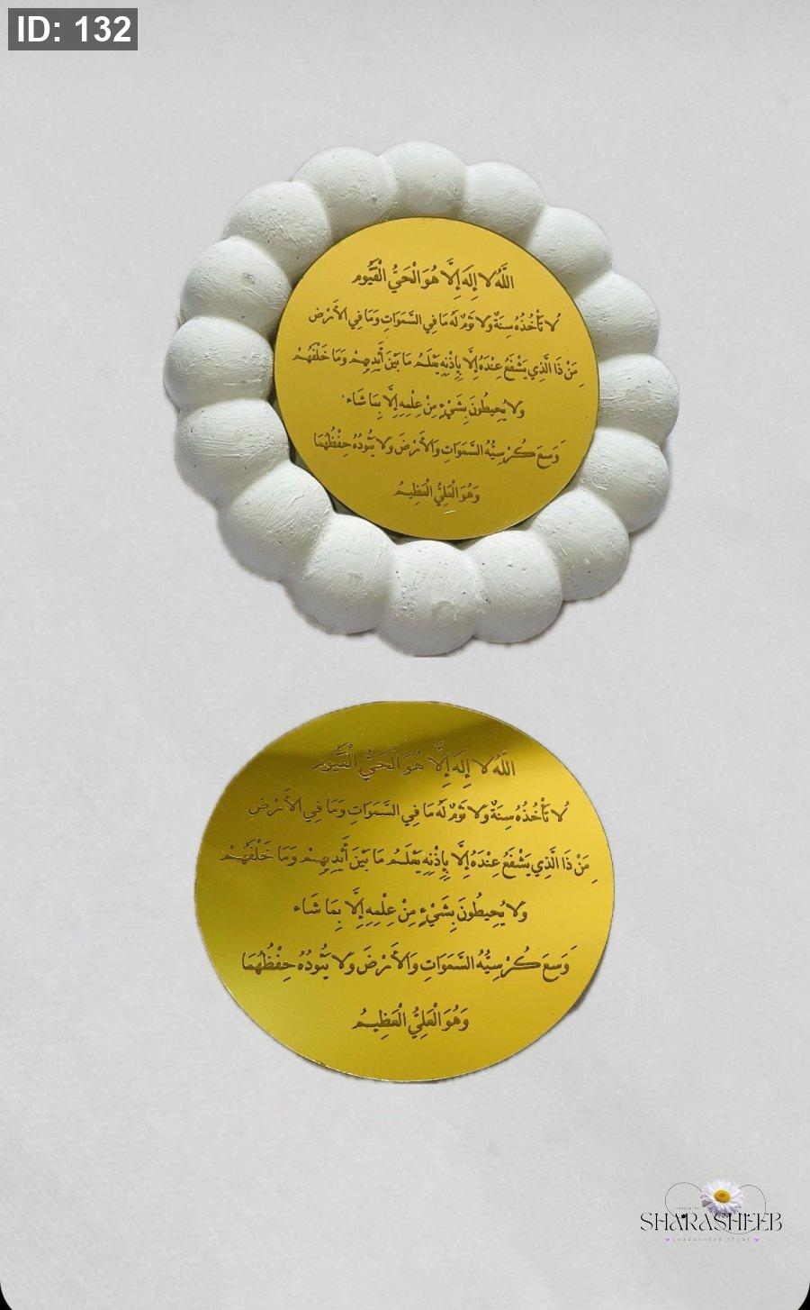 مراية ذهبي مع اية الكرسي قطر 8 سم