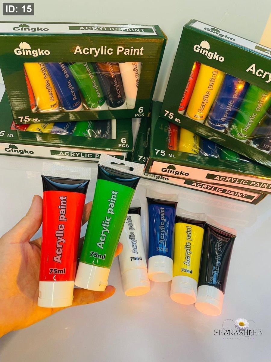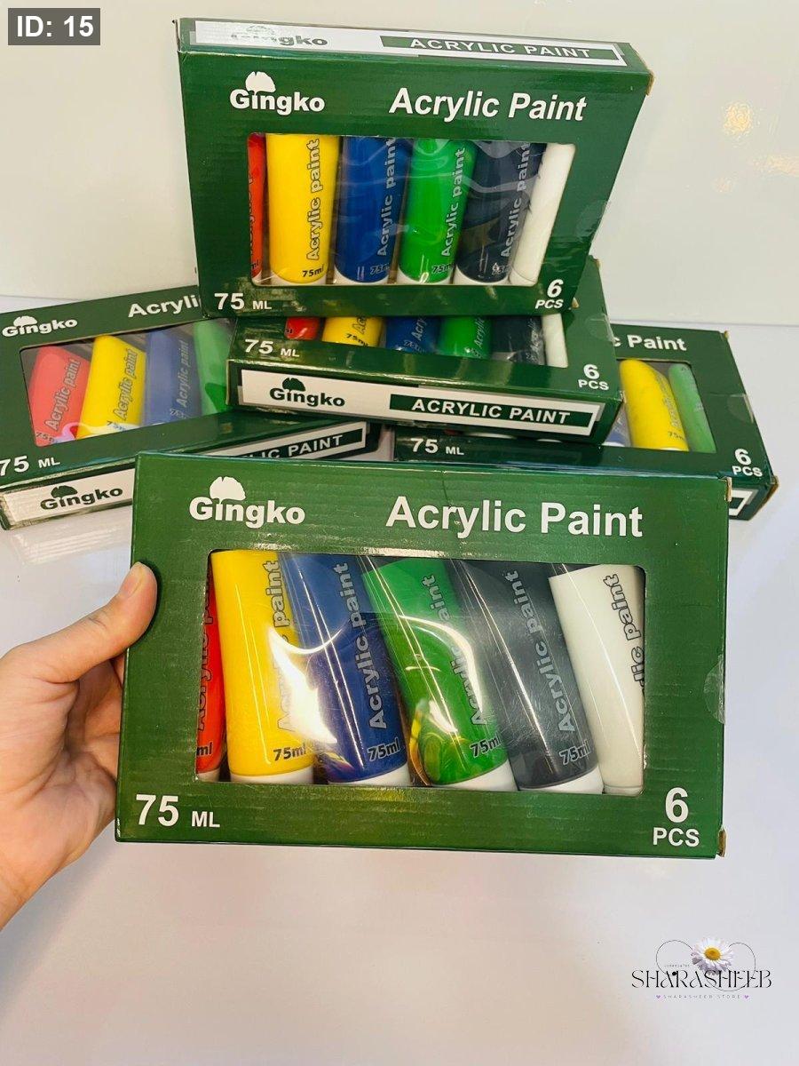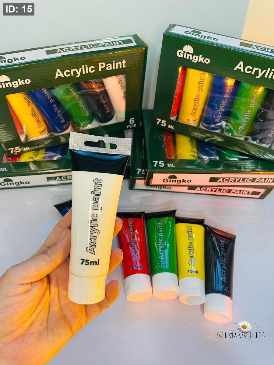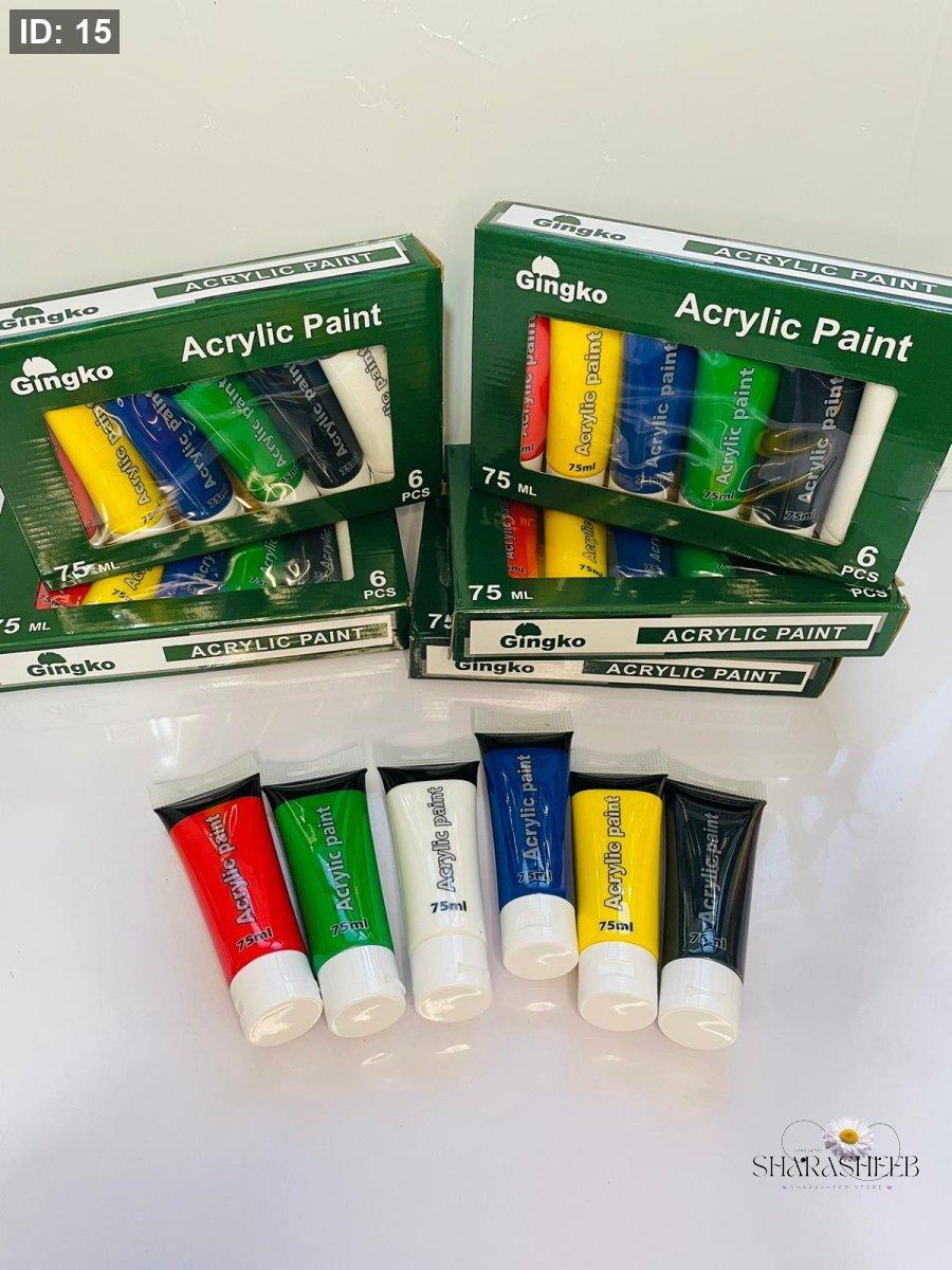 بكج ألوان اكريلك مكون من 6 تيوب حجم 75 مل