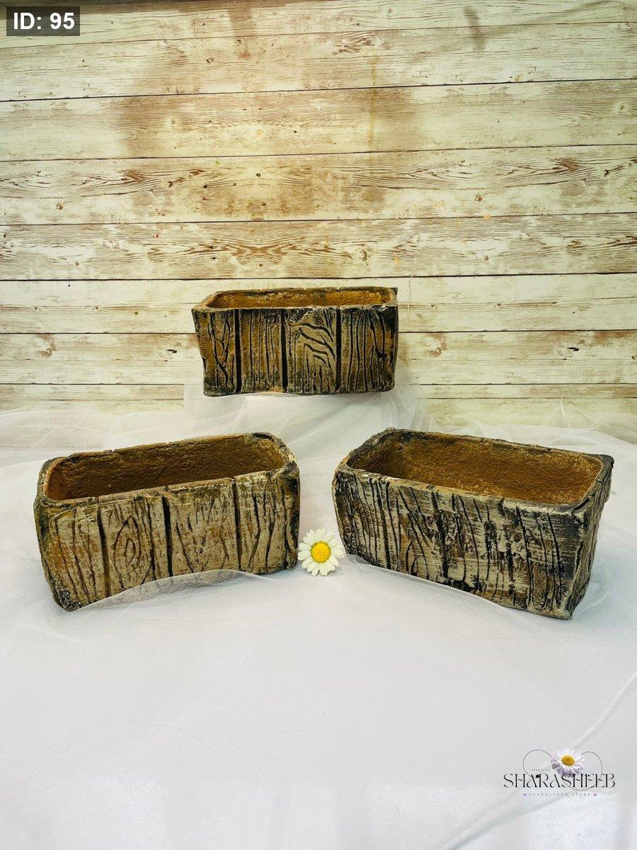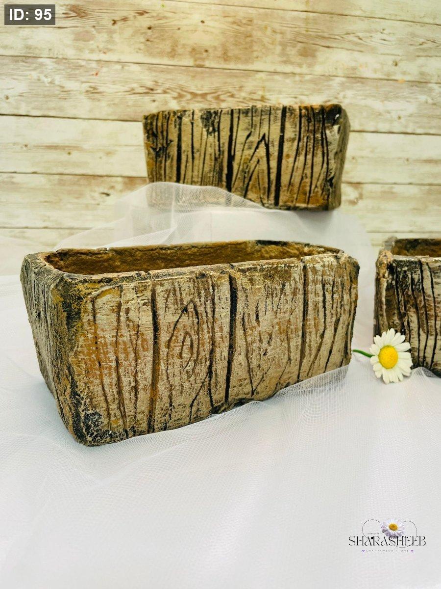 وعاء كونكريت بشكل خشبي للزرع او لتنسيق باقات الشمع